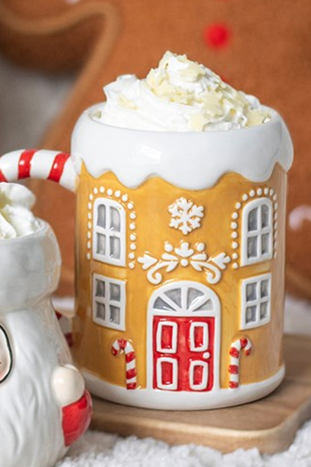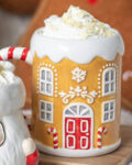Sip your favourite festive drink with this sweet gingerbread house-shaped ceramic mug, complete with a playful candy cane handle. Perfect for enjoying hot chocolate, tea, or coffee on cosy winter nights, this whimsical mug brings a touch of Christmas magic to every sip. A delightful addition to any seasonal mug collection. 500ml capacity.